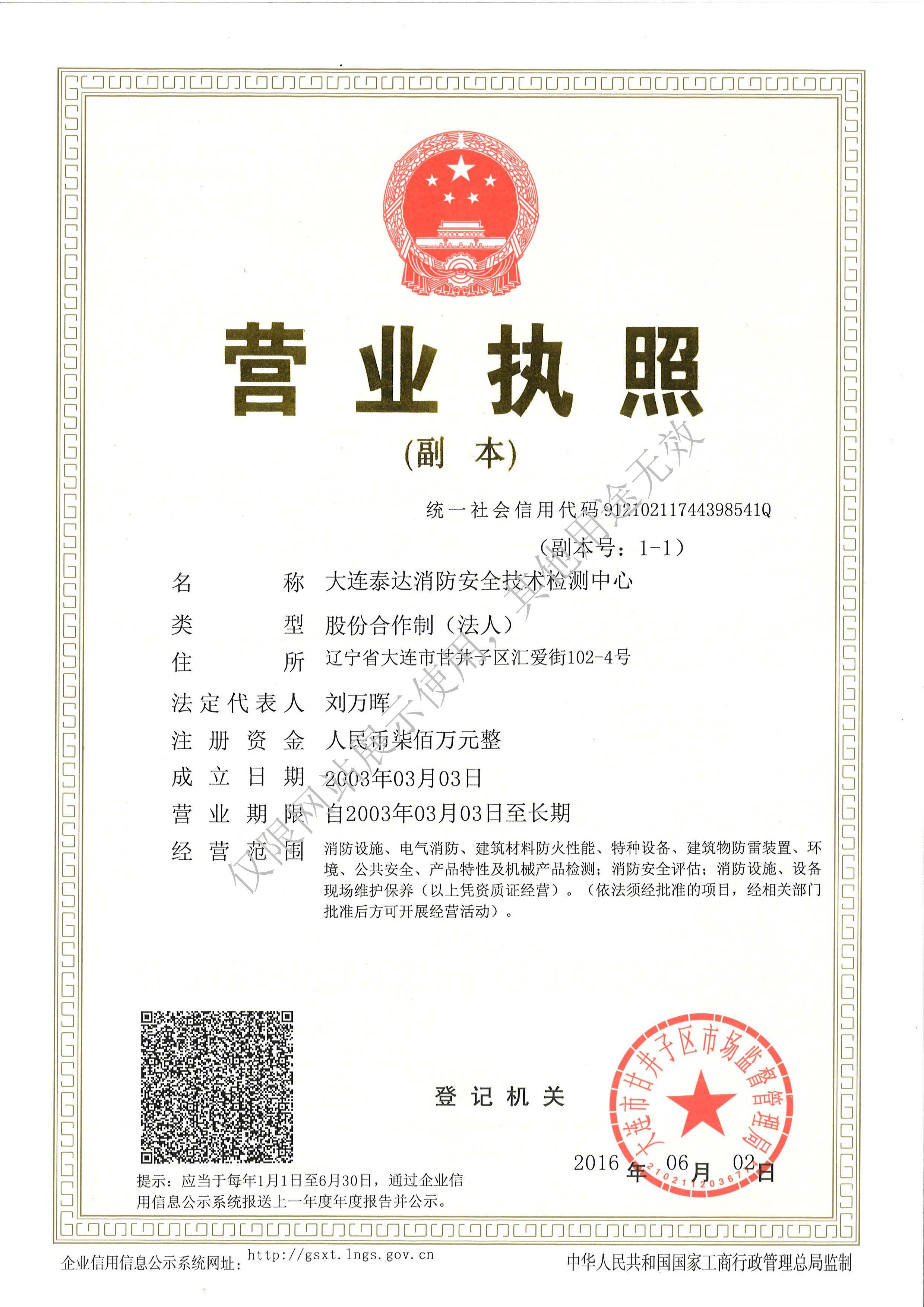 · 是經(jīng)“社會消防技術(shù)服務(wù)信息系統(tǒng)”備案并公示的消防技術(shù)服務(wù)機(jī)構(gòu),已取得中國氣象局頒發(fā)的雷電防護(hù)裝置檢測資質(zhì)證書、遼寧省質(zhì)量技術(shù)監(jiān)督局審核批準(zhǔn)的檢驗檢測機(jī)構(gòu)資質(zhì)認(rèn)定證書(CMA)及包括消防檢測、電氣檢測、雷電防護(hù)裝置檢測、防火涂層厚度檢測等在內(nèi)的200余項檢驗檢測能力,取得大連市應(yīng)急管理局頒發(fā)的安全生產(chǎn)標(biāo)準(zhǔn)化證書,獲得質(zhì)量管理體系、環(huán)境管理體系、職業(yè)健康安全管理體系認(rèn)證證書,是經(jīng)備案的高新技術(shù)企業(yè),可獨立出具具有證明作用的檢測報告。